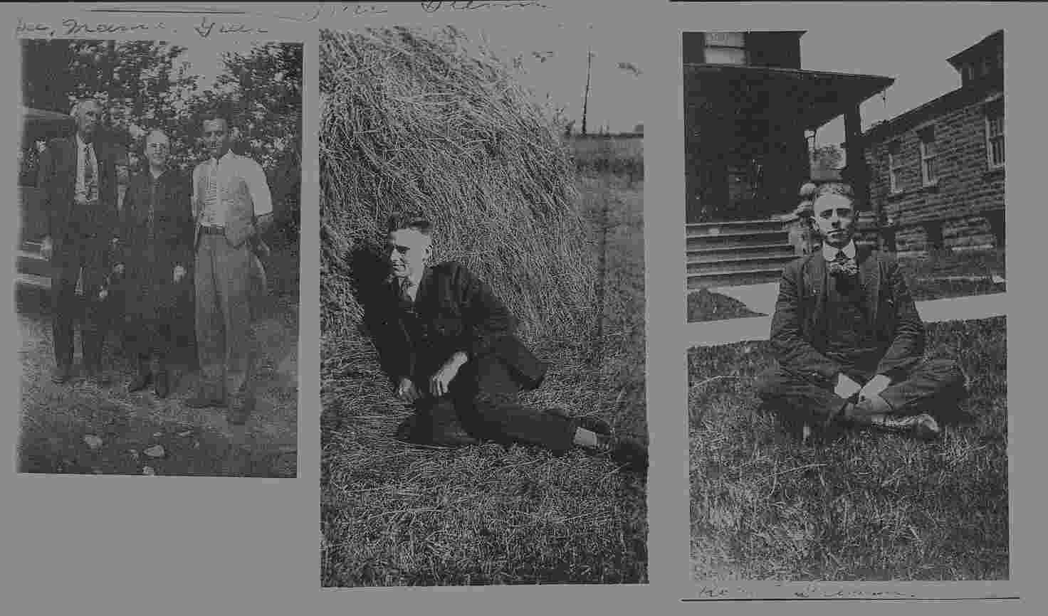 Three long ago pictures taken at the Glenn farm. At left is Louis, Callie and Greer Glenn. Uncle Greer is also in middle photo and Robert (Uncle Bob Glenn, M.D.) is at right.