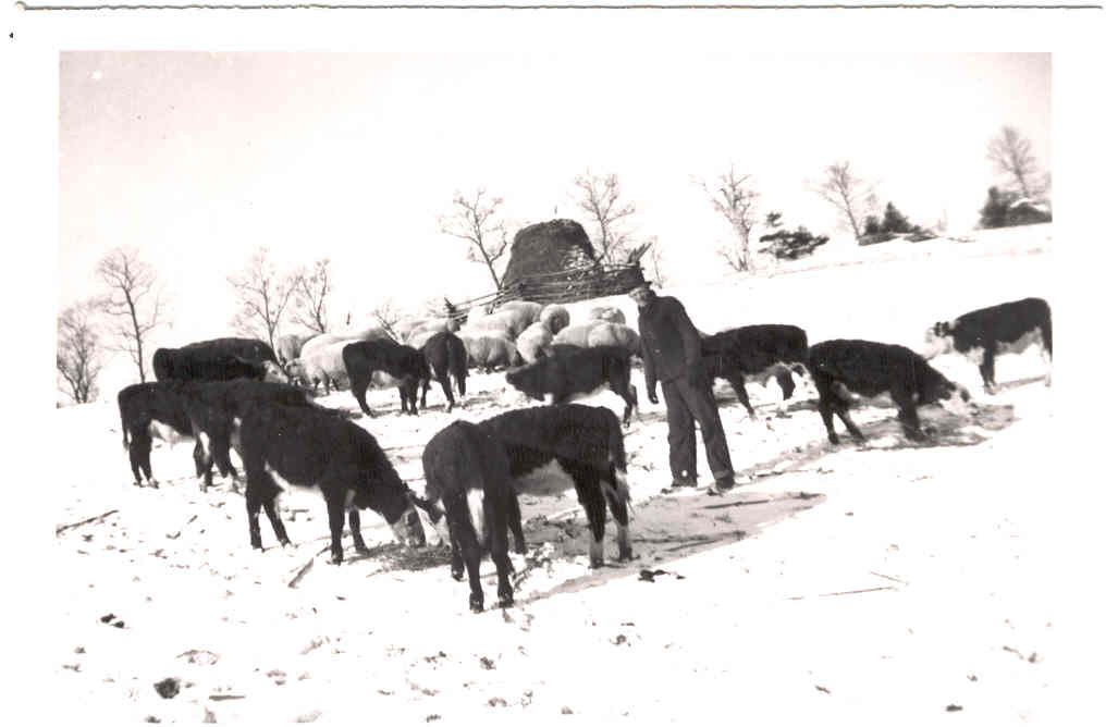 My father, Ben W. Farthing, is shown with more of his cattle and sheep, in the early 1940s.