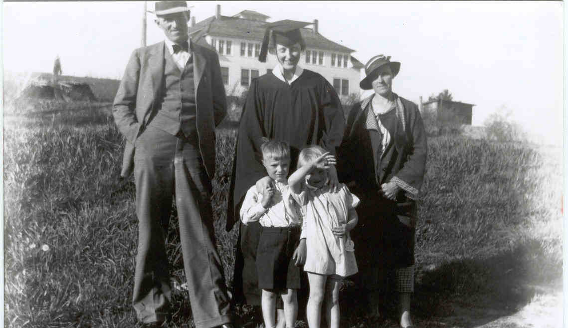 This 1935 photo was taken when my sister, Frances Farthing, received here BS degree at Appalachian Teachers College in Boone N.C. She had already taught school at locations in Watauga and Avery counties ( as reported here-in) prior the completion of her college education this year. Our dad and mother and also, twins, Ben and Dixie are shown. | ||||