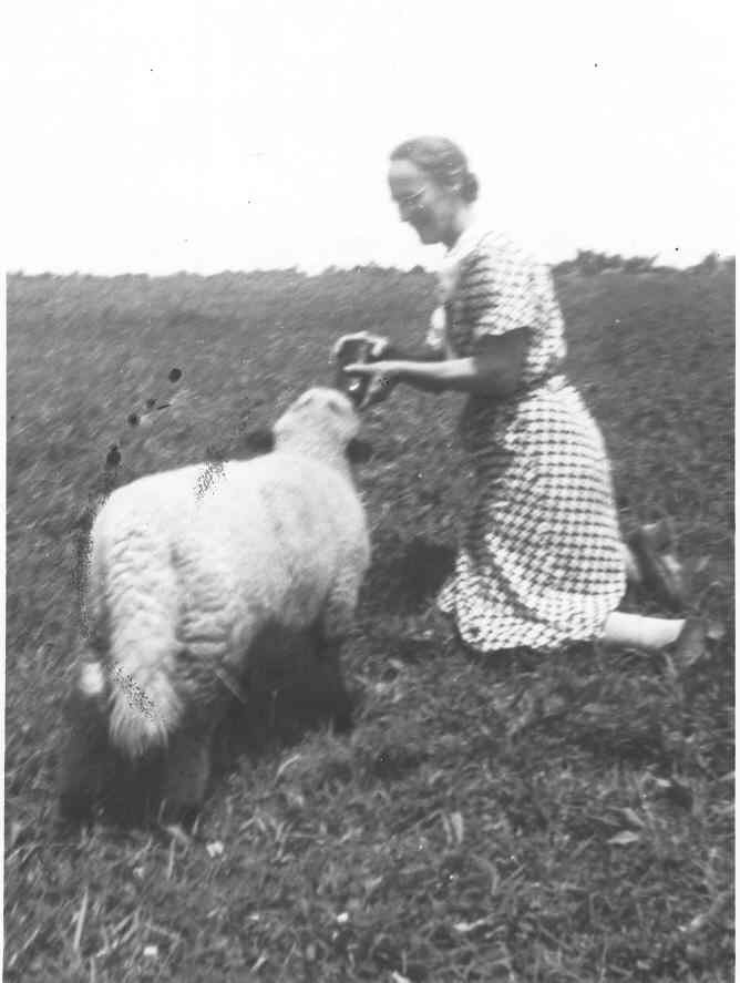 Our mother, Dixie Glenn Farthing, is feeding a lamb from a bottle. If the lamb's mother did not have enough milk, we fed some of them with a bottle. They get very tame and will follow you right into the house!!
