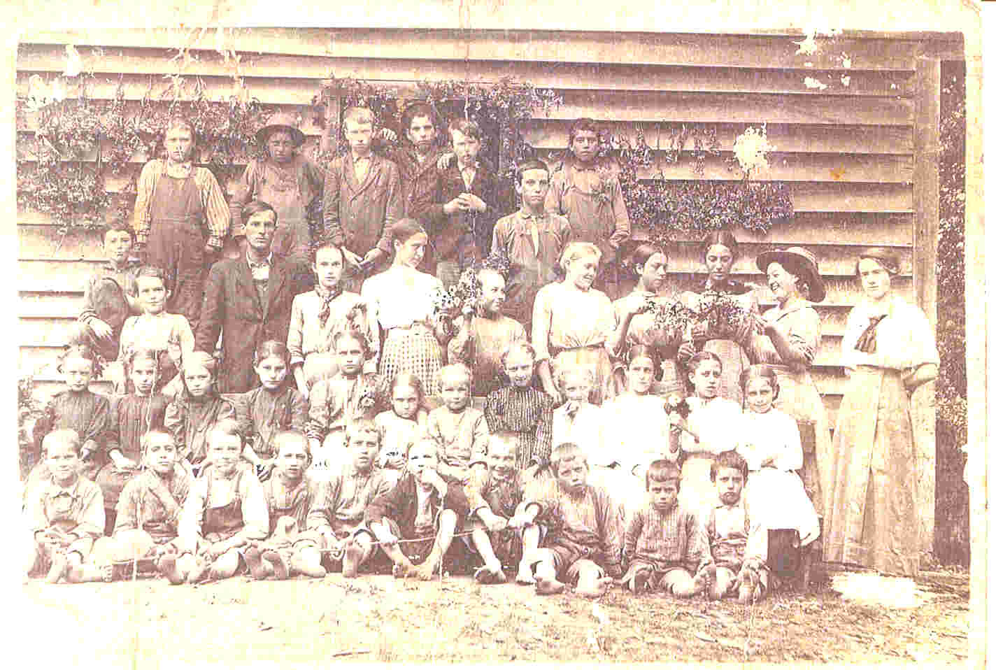 Aunt Hazel Glenn Farthing teaches at Windy Gap school in a long ago photo. She is on the right. Photo courtesy Mary Farthing Mast