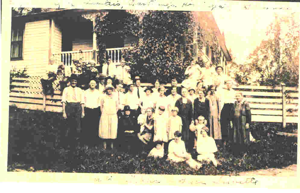 Another family and friends gathering at the GLENN farm in Laurel Creek Township, Watauga County, N.C. This was probably about 1927. My dad, Ben farthing is standing 3rd from the left and is wearing a hat. Second from dad to the right appears to be Uncle Ted Glenn. Sitting on fence at right rear is Leta Tester and Selma Thomas, two of my first cousins. To the right of them is Charles Tester, Aunt Jane Farthing's husband. He is wearing hat. In front of Charles Tester is Grandfather, Louis Glenn. In front of Louis Glenn and 4 persons to the left is Grandma CALLIE GLENN, dressed in black. Aunt Joy Glenn is sitting on the ground at front right. Many others are also in the group. |