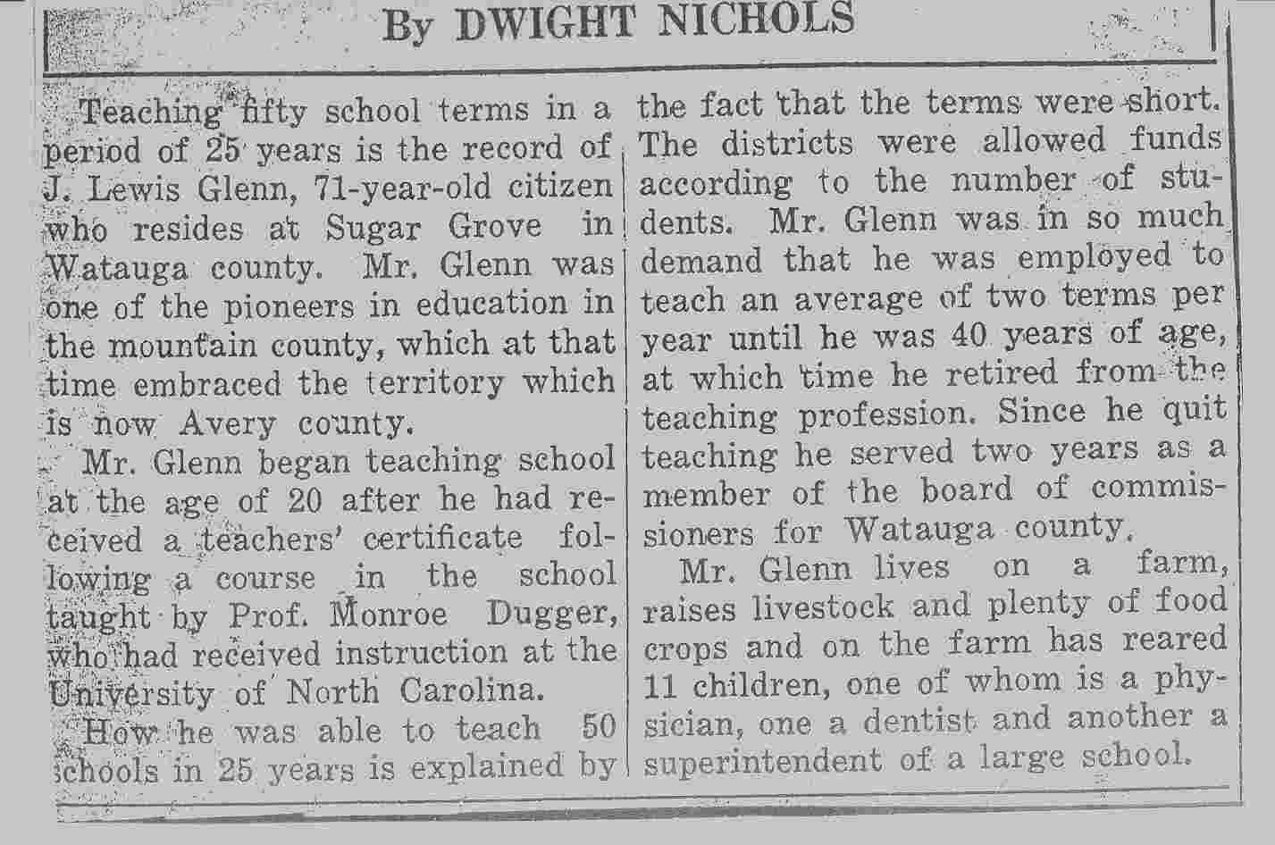 A newspaper article from long ago ( 1932) relates some information about my MATERNAL grandfather, LOUIS GLENN.