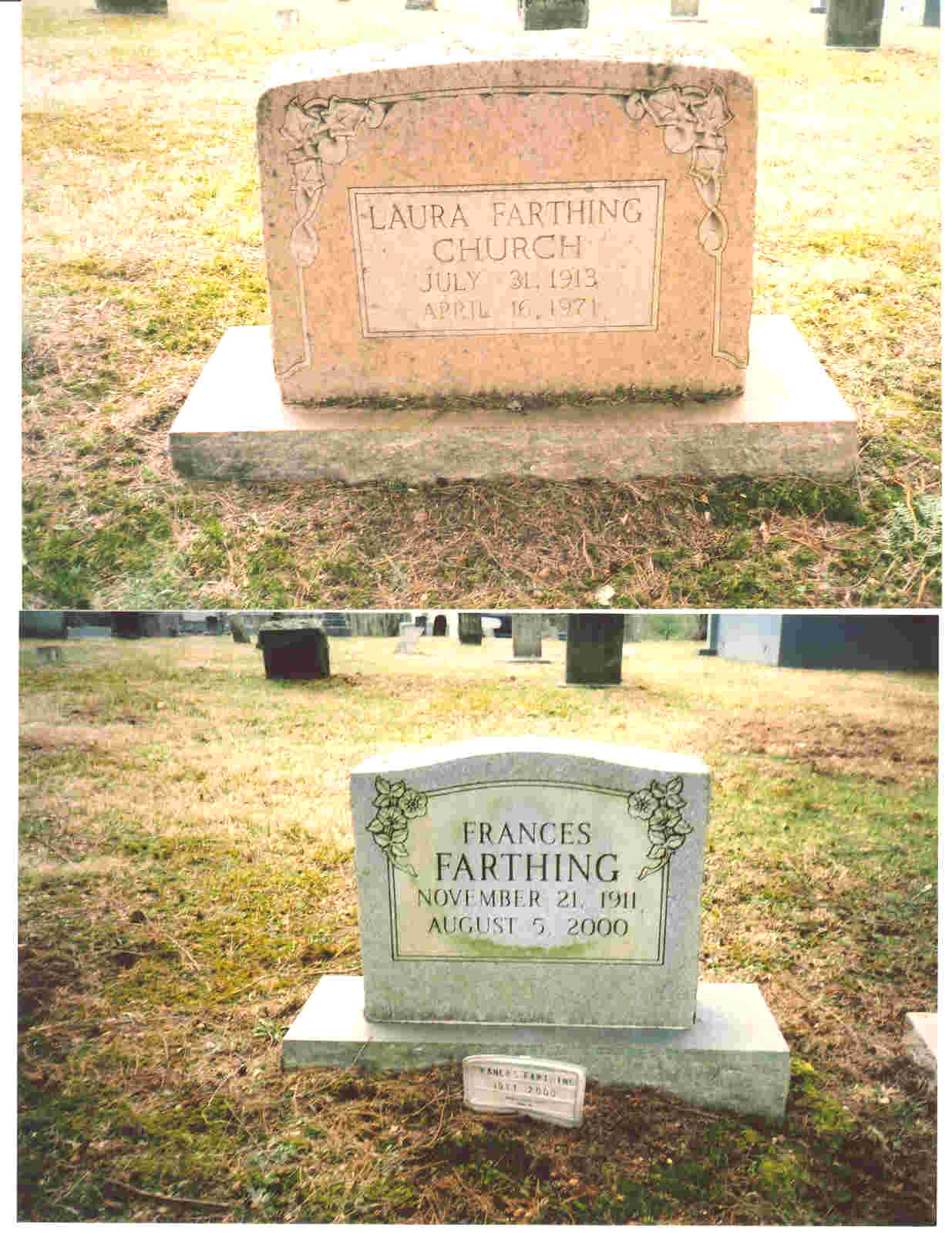 My older sisters, Frances Farthing and Laura Farthing Church are buried here at the Valle Crucis cemetary.Laura died 1971 and Frances died 2000.