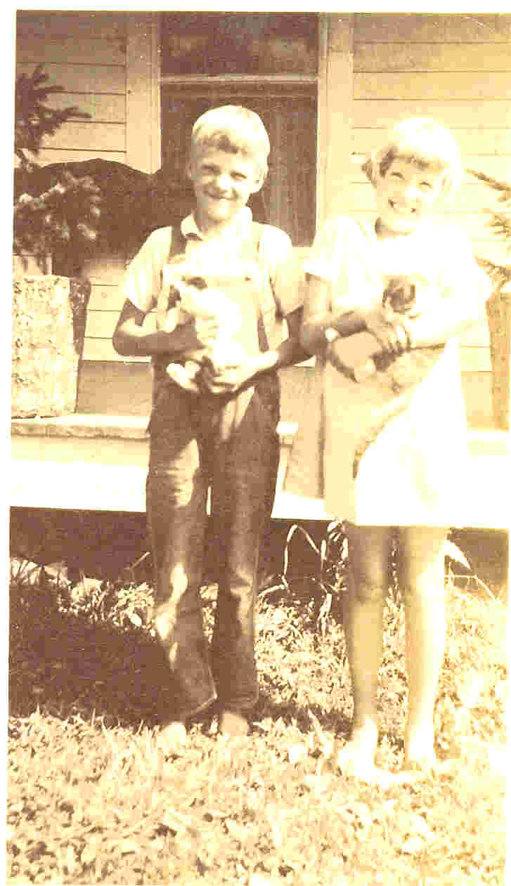 Twins, Benjy and Dixie Rae Farthing are shown about 1938 at the Farthing farm. They were born July 1930 and I remember well the day they were born. I am 3 1\2 years older than the twins.