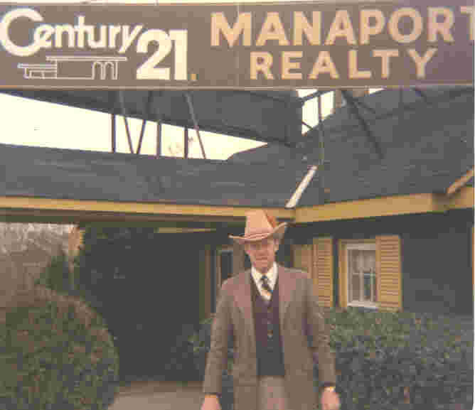 THIS IS ME, BAXTER FARTHING, IN FRONT OF MY REAL ESTATE OFFICE IN MANASSAS, VIRGINIA. ( 1980 ). For several years I specialized in land and commercial sales. I sold over 4 thousand acres of land in Prince William, Fauquier, Fairfax and Loudoun counties. Our sales agents specialized in home listings and sales. . |
