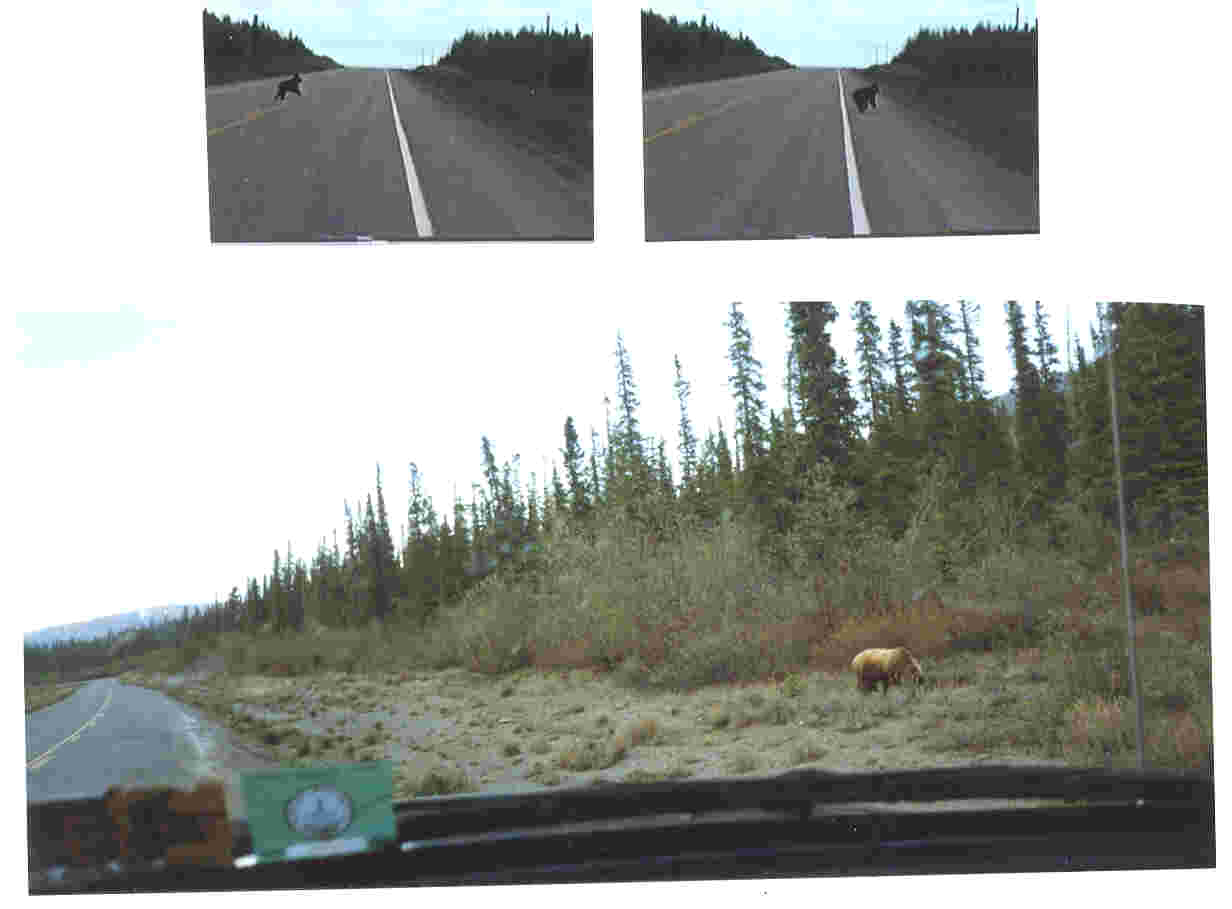 Lower pic is large brown( probably Grizzly) bear near mile 1000. PREVIOUS PAGE...NEXT PAGE