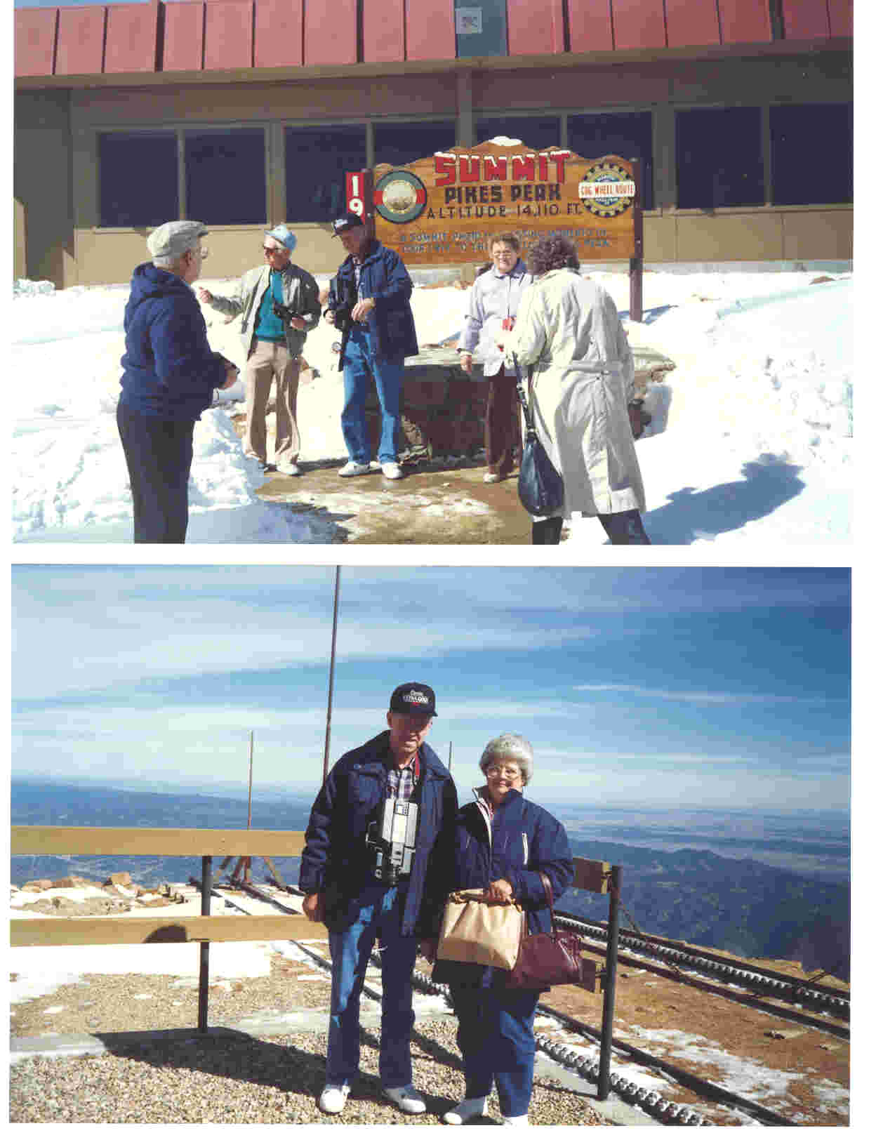 LOWER PHOTO: Reba and Baxter Farthing are shown at Pikes Peak. A "COG" Railcar climbs right up the mountain to the peakPREVIOUS PAGE...NEXT PAGE