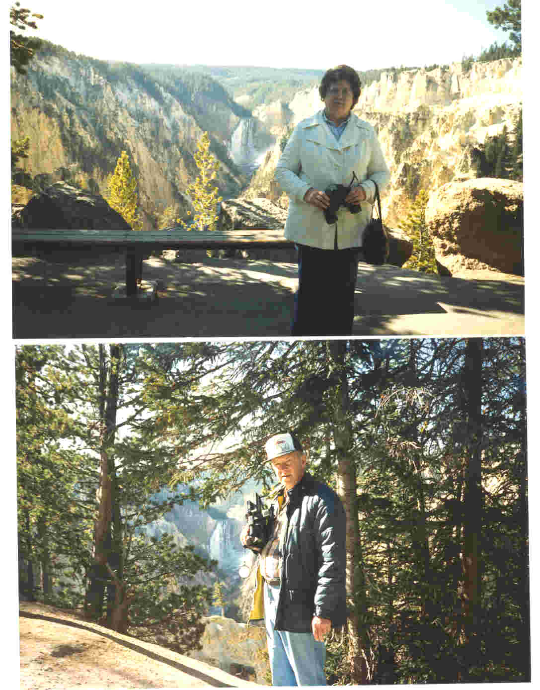 Baxter and Reba are featured with Lower Falls of the Yellowstone in background, October 1987, our first major U.S.A. trip.