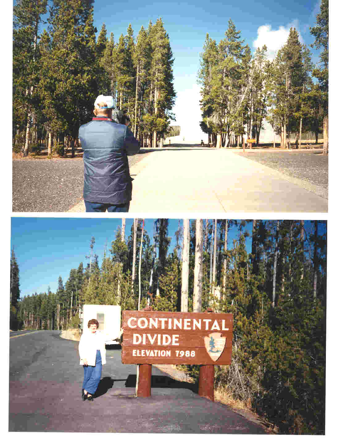Upper pic shows me getting video of Old Faithful. In lower pic, we are leaving Yellowstone, October, 1987.
