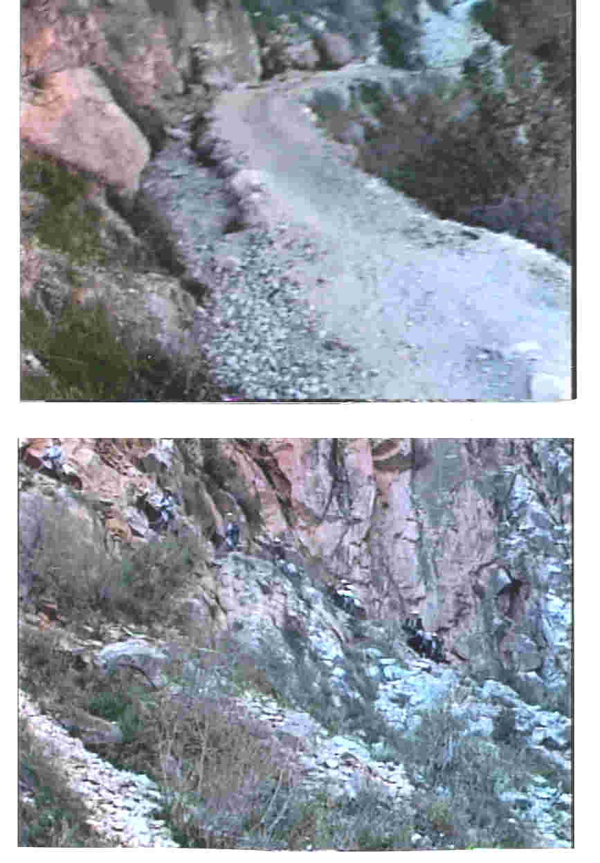 Upper pic shows some of the Grand Canyon BRIGHT ANGEL TRAIL. Lower pic shows some mules and their riders. NOTE: AS REPORTED EARLIER, SOME PHOTOS WERE RETRIEVED FROM VIDEOS WITH A "MEMORY STICK" .