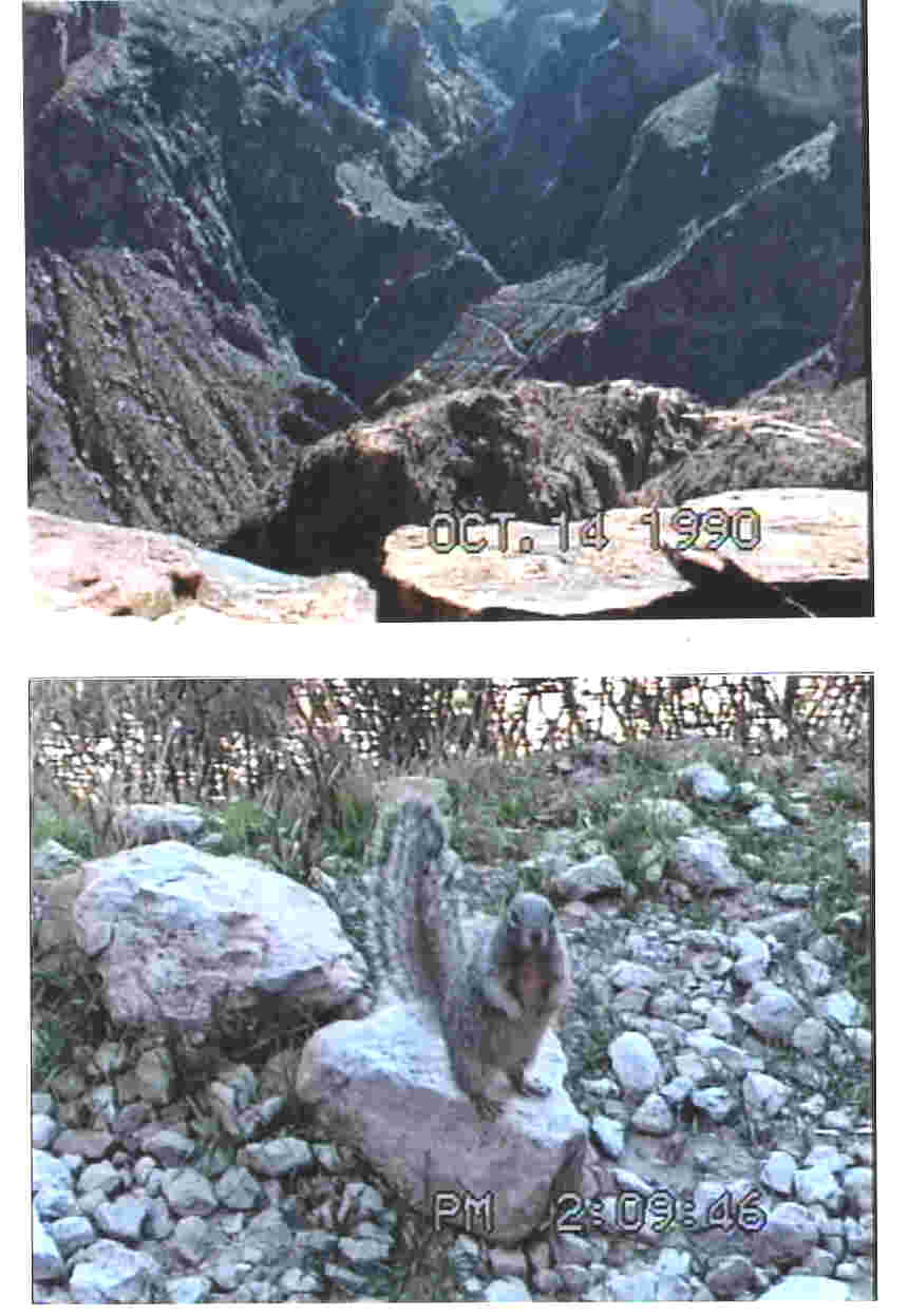 Upper pic features more Bright Angel Trail with several "switchbacks" shown in the distance.. Lower pic features a Grand Canyon squirrel that posed for me.