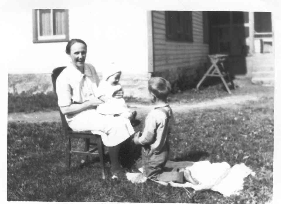 1927 photo shows my mother, Dixie Glenn Farthing, holding me. My brother , Louis, is at right. We are in our yard there at Valle Crucis, N.C. Dixie and Benjy ( twins ) were born here July, 1930.