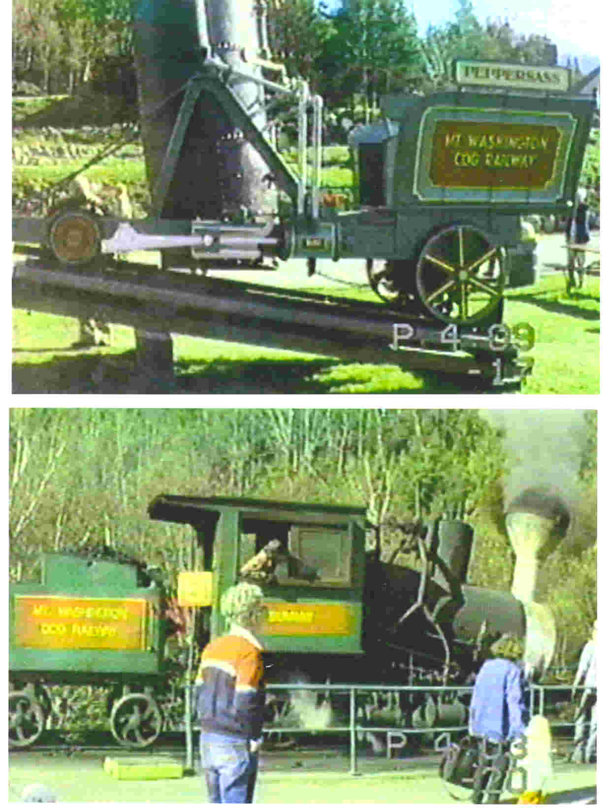 Mt Washing ton is located in the White Mountains of New Hampshire. The famous Mt. Washington RR started operating after the Civil War period. Upper pic features the first steam locomotive that pushed RR cars up the mountain 3 miles to top of Mt. Washington, highest point in eastern United States, at 6200 feet elevation. Lower pic features the present day "modern" coal burning locomotive that is used. PREVIOUS PAGE....NEXT PAGE |