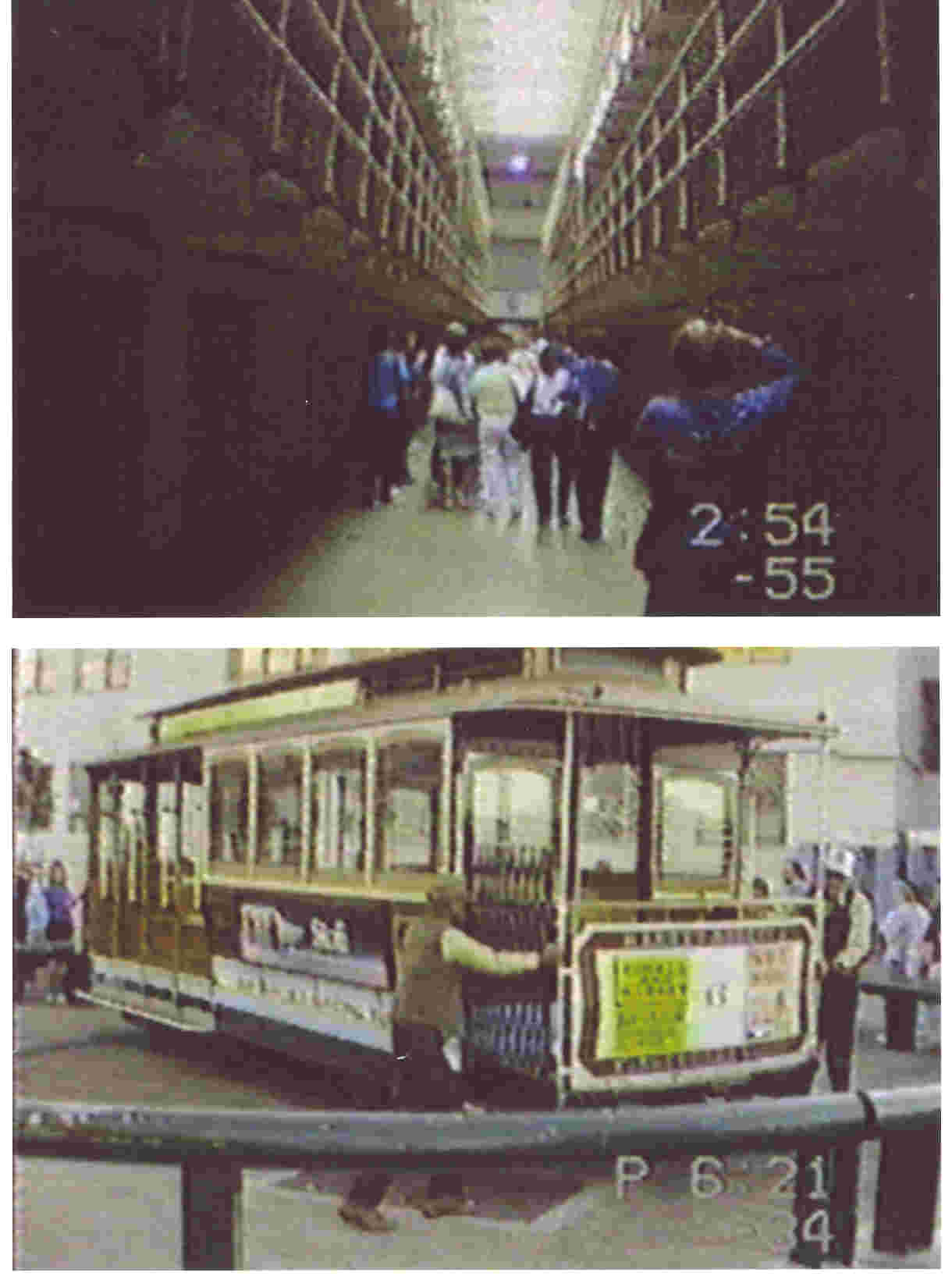 We toured the facility in 1988. When I served on the Navy Cruiser, USS Amsterdam, we were tied up at a pier here in San Francisco in 1946. At that time, a riot broke put among the inmates as they took over part of the prison. A contingent of U.S. Marines were dispached to help put down the rebellion. From our ship, we could see the search lights and hear some of the gunshots, etc as the riot was brought under control. Lower pic features a cable car that we rode several miles. |
