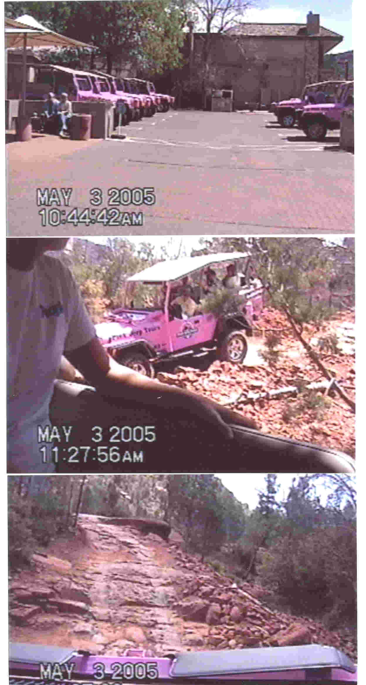 I took the 2 hour PINK JEEP TOUR at Sedona, Arizona. Middle pic shows a Jeep load of tourists on the trail. Lower pic shows the trail, some places twice as steep and MUCH rougher than this example. Six passengers were along on this tour which traveled a considerable distance thru a National forest. PREVIOUS PAGE...NEXT PAGE |
