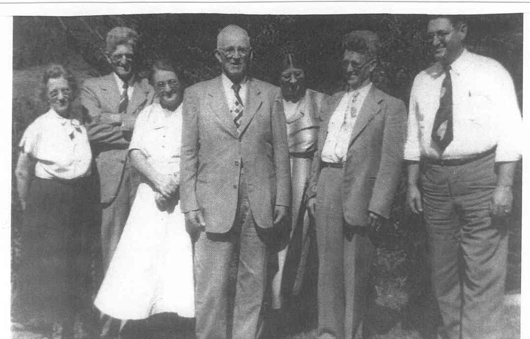 This photo was taken about 1950 and was probably at Uncle Aubyn Farthing's home at Valle Crucis. At left is Aunt Delia Farthing FRANKLIN, My father, Ben W. Farthing, Aunt Gladys Farthing, Their father, ( my Grandfather) William Judson Farthing, Aunt Stella Farthing, Uncle Aubyn Farthing and Uncle George Farthing. Grandfather William Farthing died the following year, 1951. ( Grandmother, Laura Greer Farthing, died 1943 at their farm). NOTE: My aunts, (Stella and Gladys), married Bert and James Farthing from the Bethel community, in 1913. Aunt Elsie Farthing POWERS (wife of Dr. John Powers) and Uncle Tom Farthing (PHYSICIAN in California ), 2 of the children of William and Laura Farthing, not shown in this photo, are shown on a couple other photos on this website. |