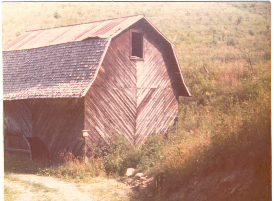 This is a barn that Dad constructed in 1939, the year after we moved to this property from Valle Crucis, 6 miles up the river. Dad designed and built the barn, mostly by himself. I also helped wherever I could. This barn served three purposes: We used it to hang part of the tobacco crop for curing, after tobacco was cut in the fall. ( we also had to hang some of the crop in the larger barn for curing). Part of the second level was floored and used as a place to store all farm equipment in the dry, during winter months. A roadway, at the left end of this barn, to the upper level, gave access, which made it handy for the horses to pull horse drawn equipment up to this level for storage. My father never let farm equipment stay out in the weather after harvest. The third use of this barn was a dry place in which to keep the ewes out of the cold winter weather, especially at night, during lambing time, in January. |