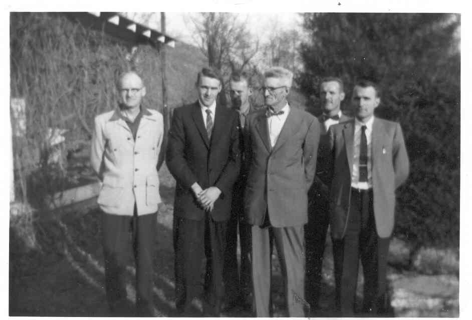 A photo from 1955 at the Farthing farm in Laurel Creek Township, Watauga County, shows from left; Raymond ( 1915-2004), Benjy ( 1930-1975), Baxter ( Born 1926), Dad; Benjamin W Farthing ( December, 1889 - 1967 ), Louis ( 1920-1996), and Wheeler ( 1917-1967). As of January 2006, Baxter is the only survivor of this group. | ||||