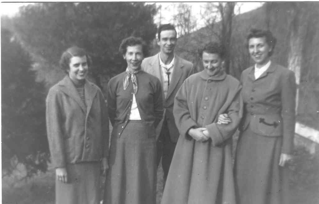 This photo from 1955 at the Farthing farm in Watauga County, N.C. shows several "INLAWS" in the Farthing family. From left is Agnes, ( Benjy's wife), Carolyn, ( Louis's wife ), B.B. Huff, (Dixie Rae's husband ), Alice, ( Raymond's wife ) and Mary, ( Wheeler's wife). |