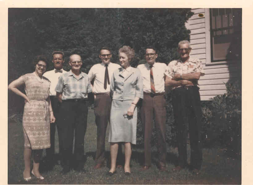 A mid-1960s photo shows several of my siblings along with our father, Ben W. Farthing. From left is Laura, (1913-1971), Louis, (1920-1996), Raymond, (1915-2004), Benjy, (1930-1975), Frances, (1911-2000), Wheeler, (1917-1967), Our father, Ben Farthing, (1889-1967). Baxter and Dixie Farthing Huff are not in photo. |
