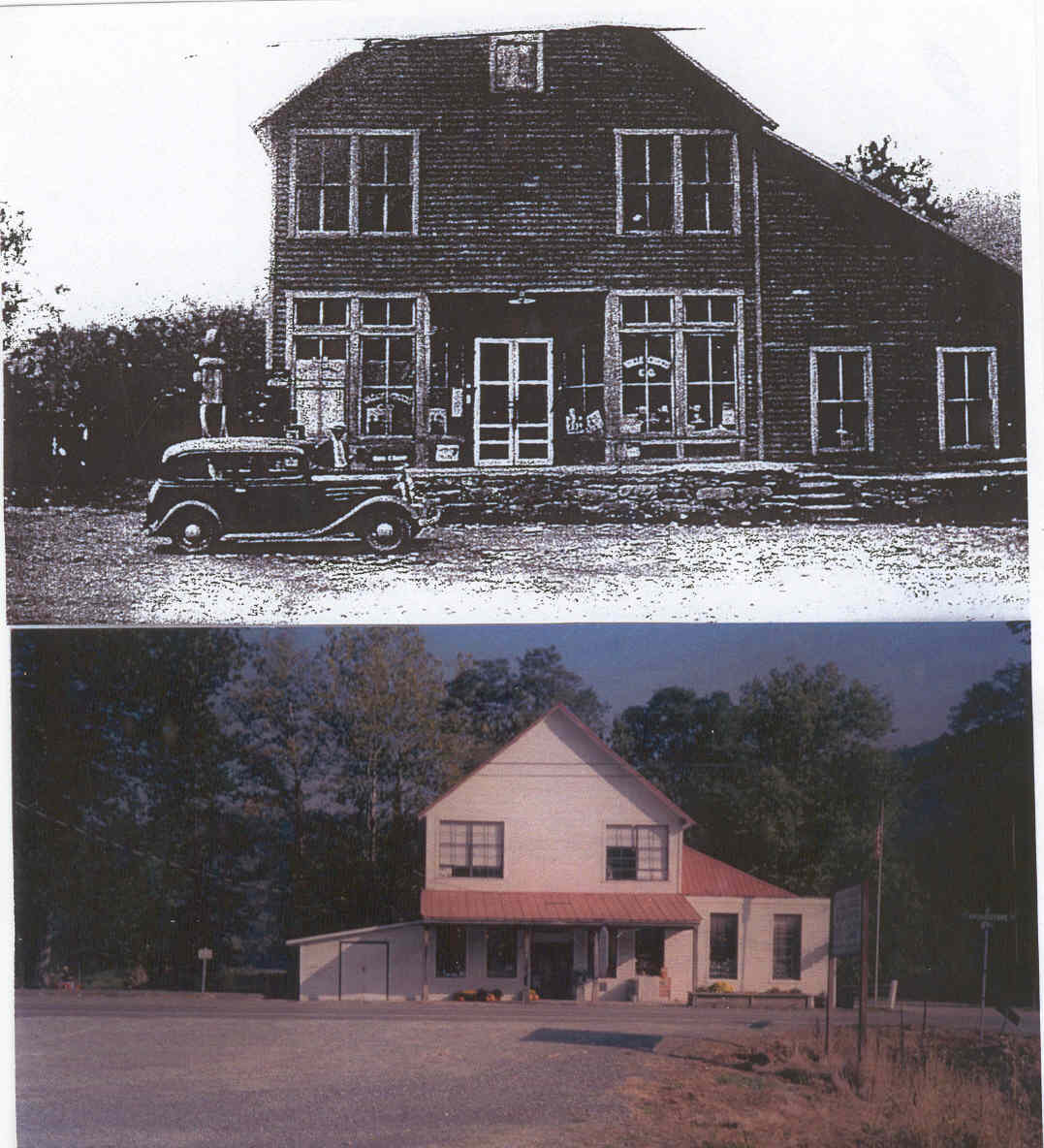 Top photo; FARTHING'S STORE in the mid 1930s. Lower photo as it is shown in 2003.