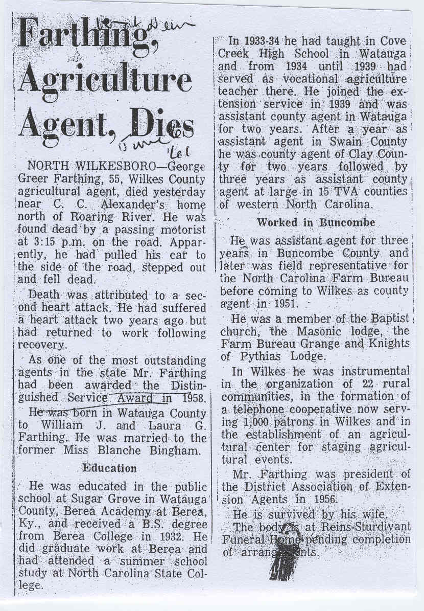 This 1961 article gives details of the death of dad's brother, George Farthing.