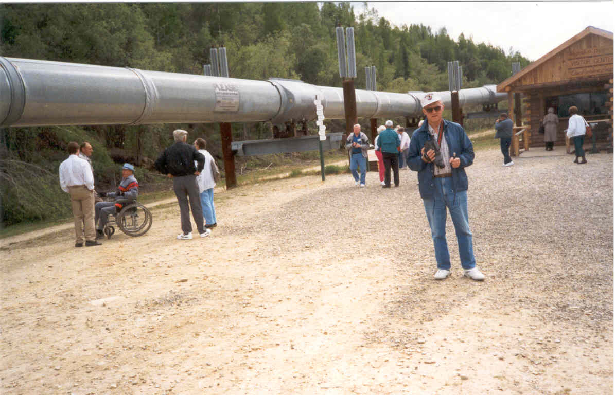 I am shown here at a visitors center at the Alaska Pipeline near Fairbanks, Alaska. The pipeline is 800 miles long and runs from Prudhoe Bay to the seaport at Valdez, Alaska.