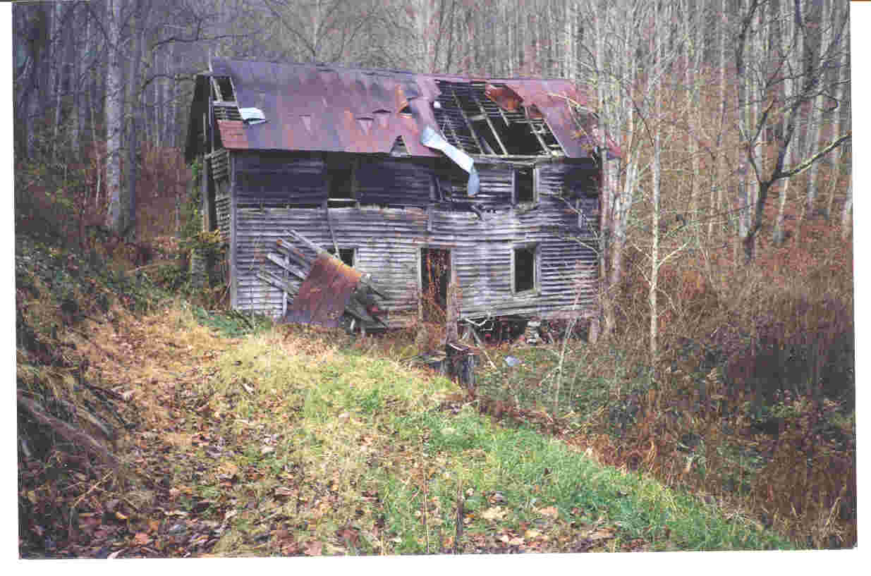 This shows the remains of the original BEN GREER house. Ben Greer had a 95 acre farm at this location. After he died in 1912, at 97 years of age, the farm property passed through several owners. My brother Raymond Farthing ( died 2004) and I walked back to this location in 1997 when I took this photo. The property was located several hundred yards off the Cove Creek and the highway. |