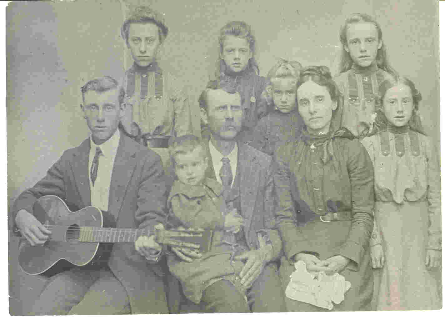 The first 7 children are shown in this long ago photo. Back row left is Clydie, Eunice, Bernice, Dixie, (my mother). Front is Marshall ( oldest child, born, 1888), Greer is sitting on Grandpa Glenn's lap, Grandma Glenn and Hazel.. PREVIOUS PAGE......NEXT PAGE |