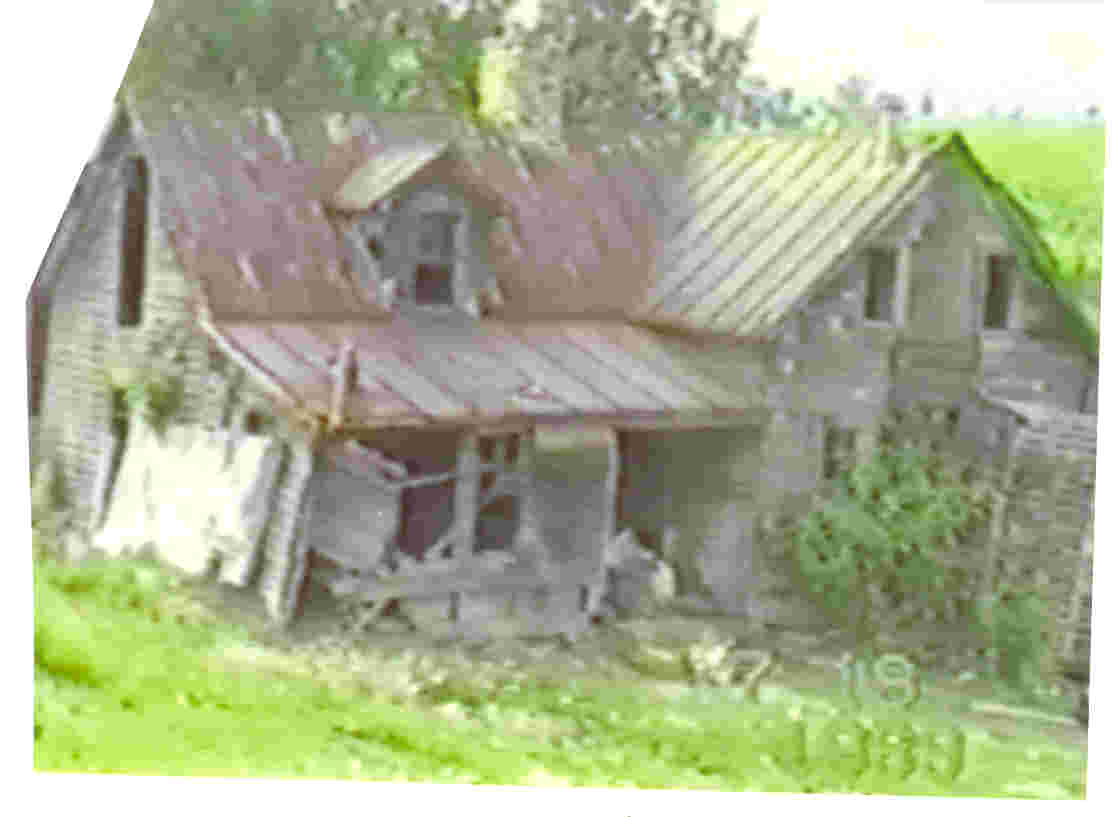 This photo shows the remnants of the original William and Laura FARTHING house. William Farthing constructed this dwelling in 1901, the year he acquired 170 acres mostly all wooded land, located in Laurel Creek Township, Watauga County, N.C. He moved the family into this new dwelling fall of 1901. Aunt Elsie was only a few months old when the family moved to this new house. Thomas was born here in 1903 and George, youngest, 1906. Most of the Grandchildren would remember this dwelling when it was in excellent condition. Grandma Farthing died in 1943 and Grandpa Farthing sold the farm in 1946. The new owners built a new house, and this original house was no longer maintained. |